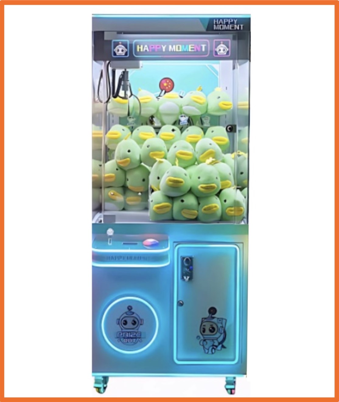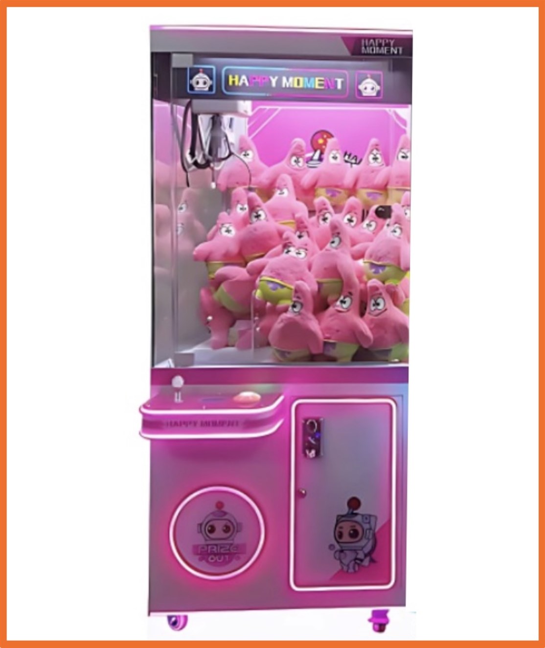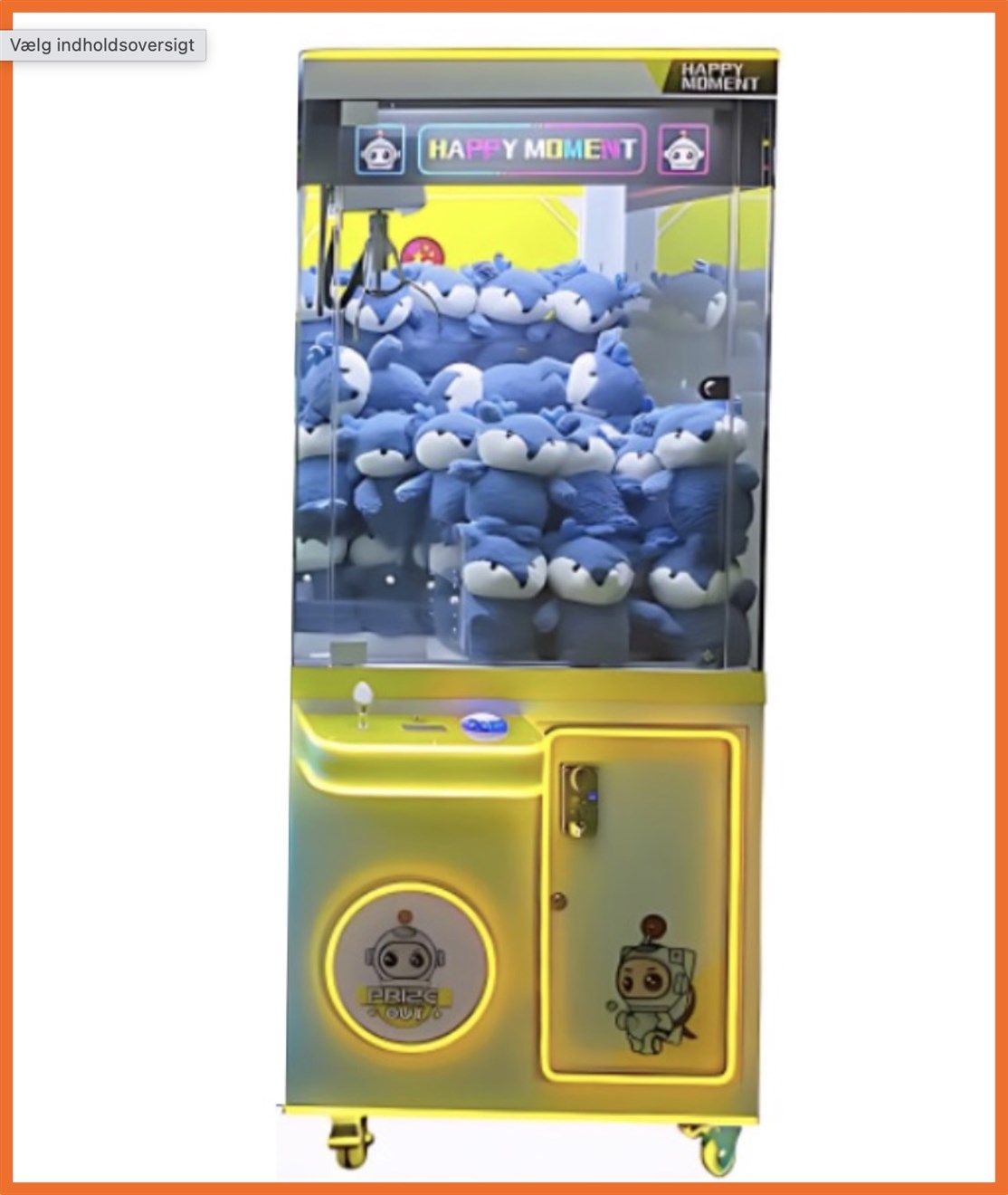 Iøjnefaldende kran maskine med blødt LED lyg, der tiltrækker både børn og voksne og som med sin størrelse er pladsbesparende og produceret i materialer af høj kvalitet og er perfekt til butikker, spillehaller, legeland og events af enhver art.