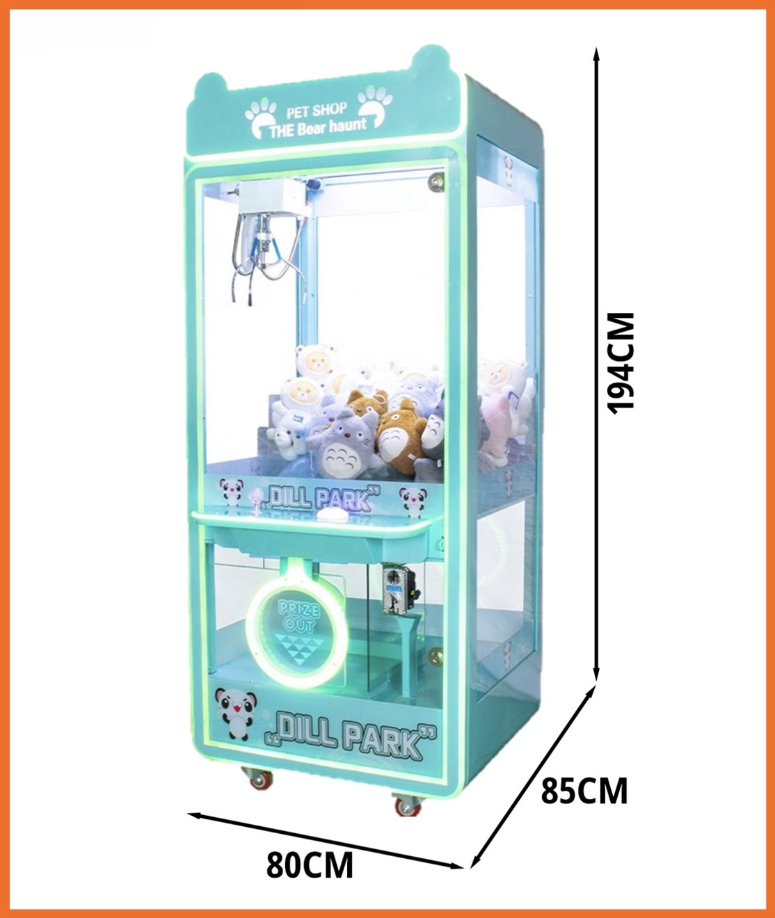 Iøjnefaldende kran maskine med blødt LED lyg, der tiltrækker både børn og voksne og som med sin størrelse er pladsbesparende og produceret i materialer af høj kvalitet og er perfekt til butikker, spillehaller, legeland og events af enhver art.