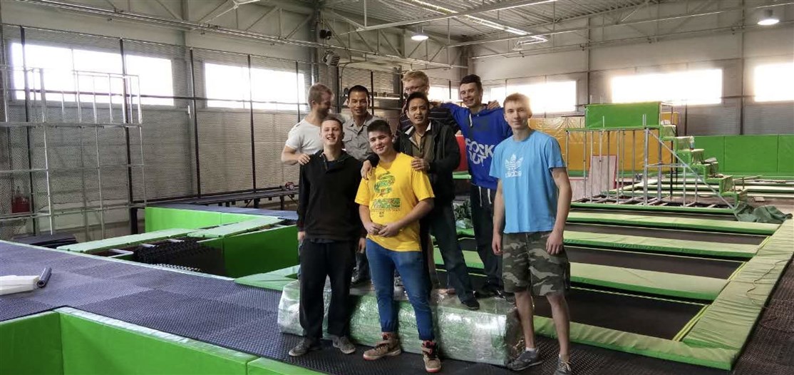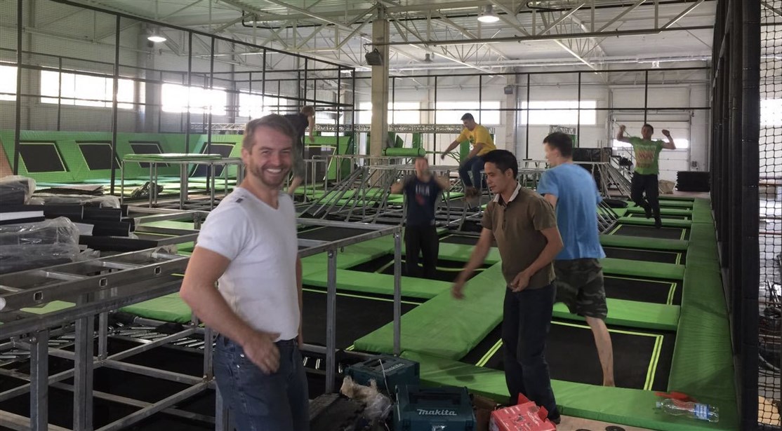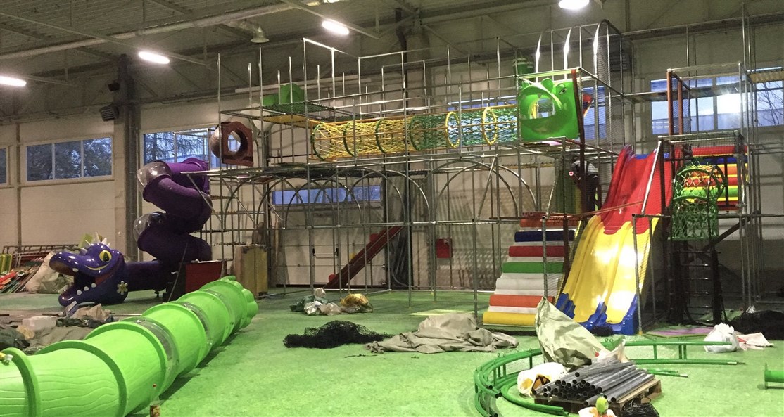 Billeder af monterings team fra opbygning af 200 m2 stort nyt legeland i Polen