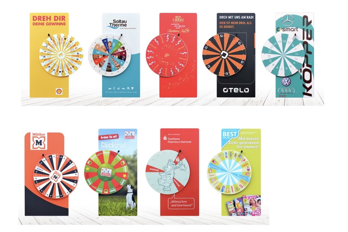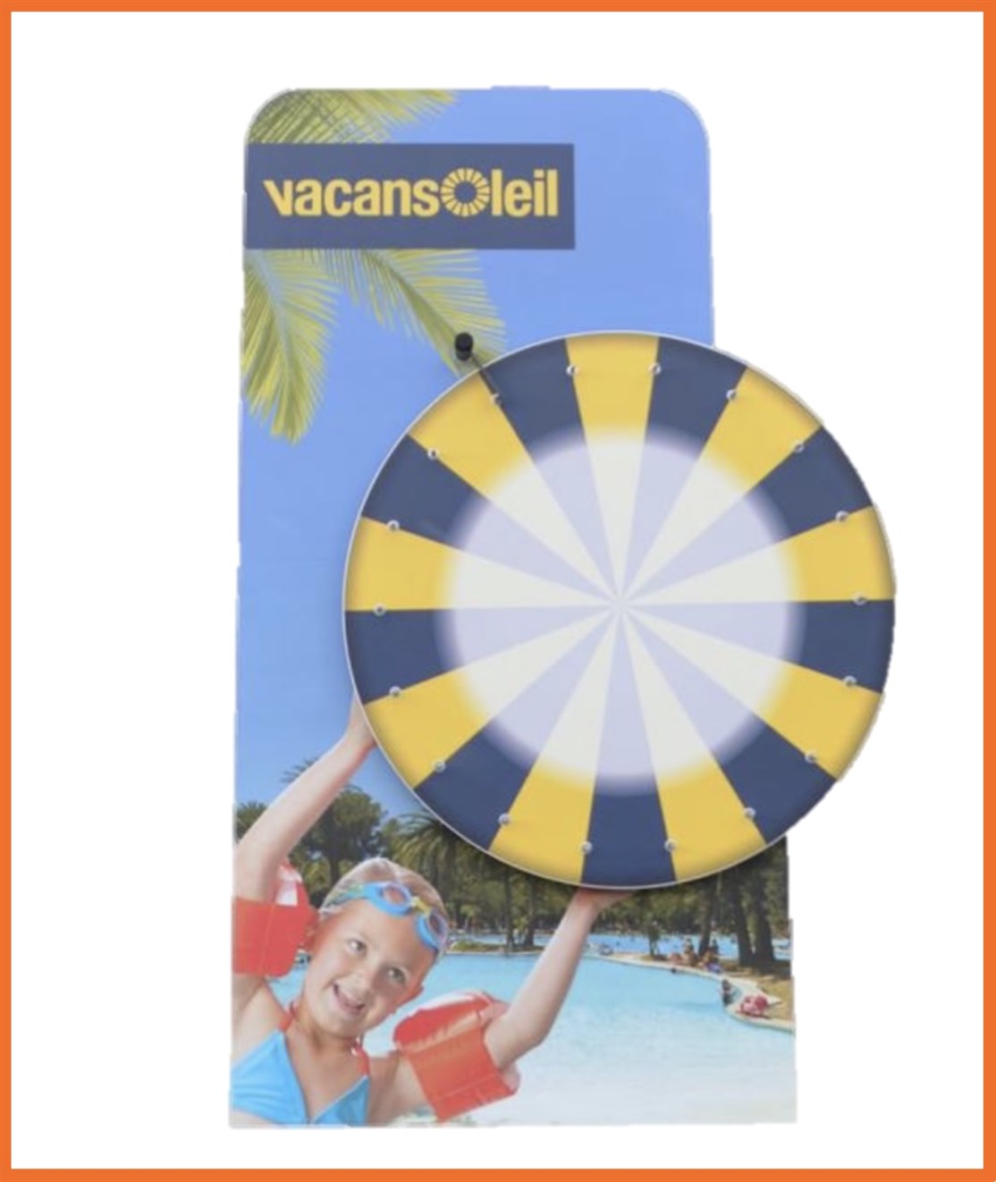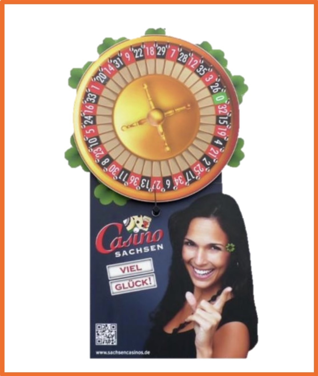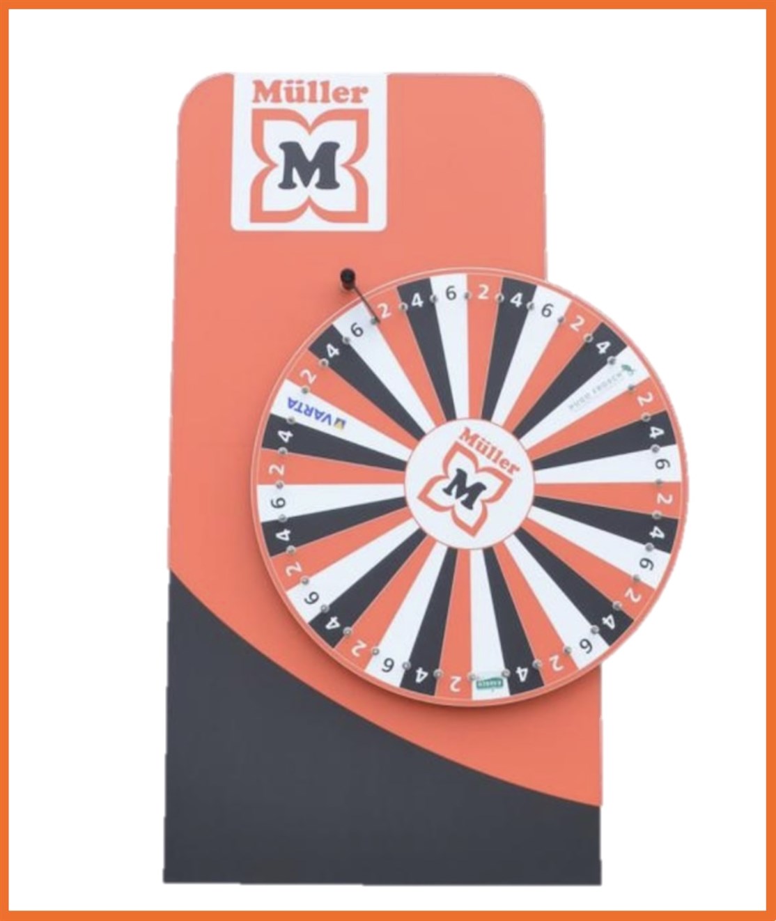 Selve lykkehjulspladen kan vælges fra str. Ø 40 cm. og helt op til str. Ø 100 cm. og er perfekt til f.eks. brand promotion, messer og ligende.