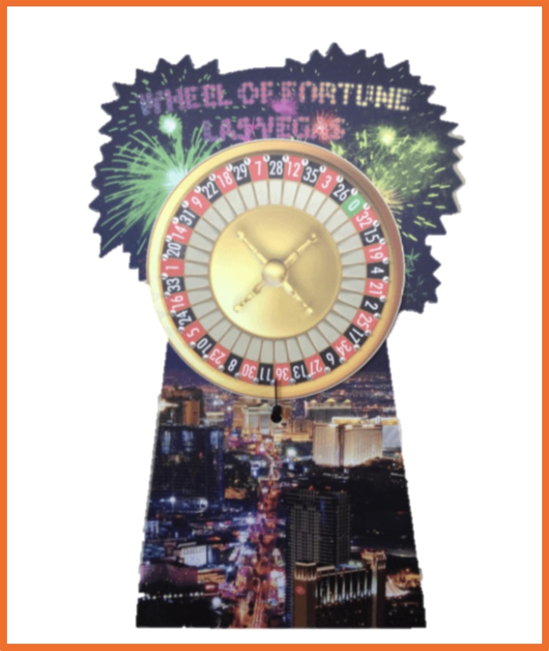 Denne type Lykkehjul har en stor flot bagplade som kan produceres lige som du ønsker det, enten udskåret i en speciel form eller efter billede - Her er det kun fantasien der sætter grænser.