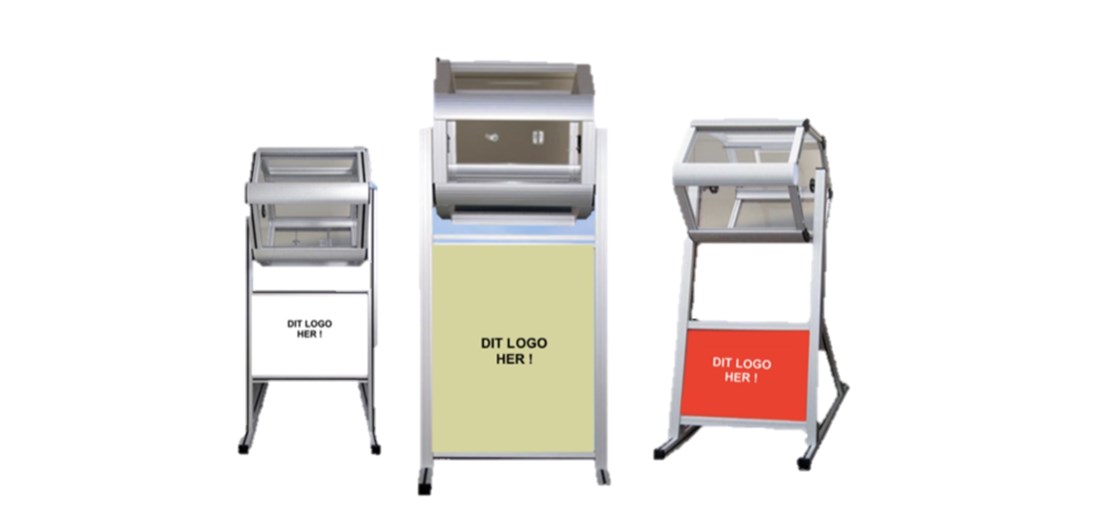 Vi producerer tombola tromler i alu profiler og plexiglas med plads til dit logo, navn eller budskab, og både som bord og gulv model. Og du kan her selv vælge design, farve og størrelse.