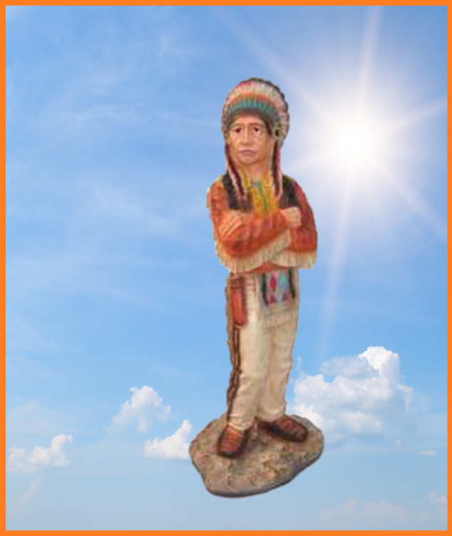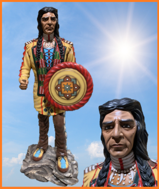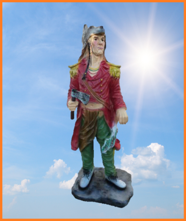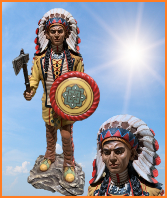 Indianer på sokkel med tomahawk