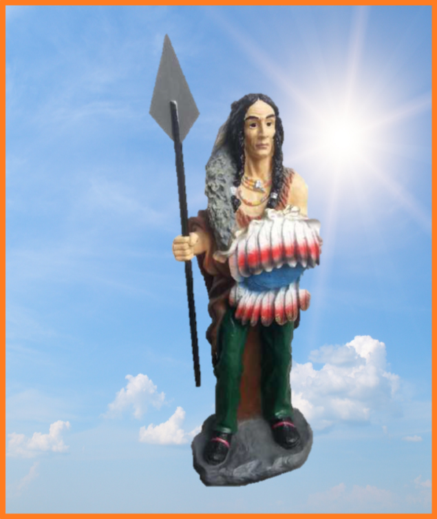 Indianer på sokkel med spyd